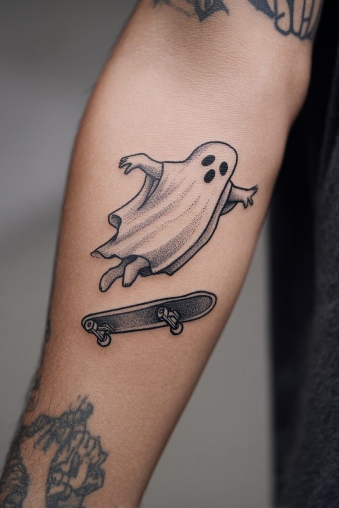 For the adventurous pair that spent their youth at the park or exploring the city streets, a ghost riding a skateboard is a high-energy and edgy design. It captures a sense of freedom and a refusal to grow up, making it a fantastic choice for brothers or lifelong friends. The movement in the design, with the sheet fluttering in the wind, adds a dynamic quality that stands out among more static tattoo options. It celebrates a shared passion for action and the rebellious spirit that often defines close-knit groups. You can even customize the bottom of the skateboards with matching patterns or colors to further link the two pieces. This ink is a tribute to the scrapes, the falls, and the triumphs you have experienced together while navigating the world on four wheels. It ensures that your shared sense of adventure is never forgotten, even as life slows down.