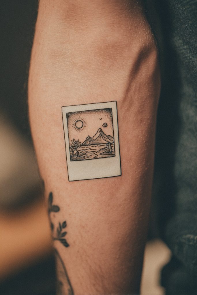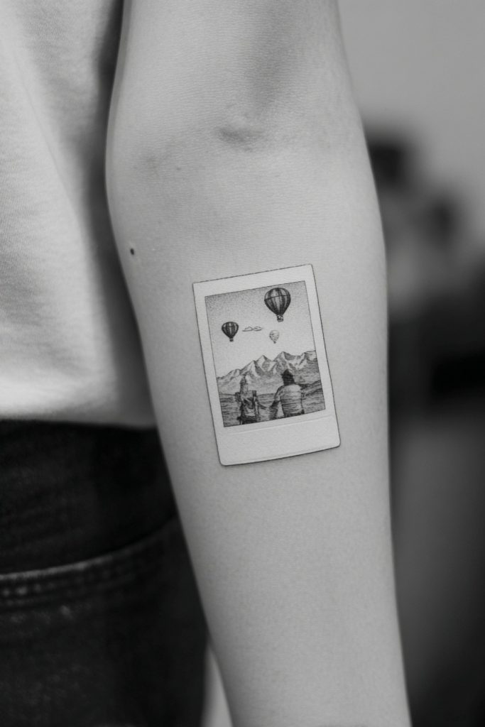 Capturing a moment in time is the essence of a photograph, and a ghost sitting inside a tiny Polaroid frame is a creative way to immortalize your bond. This design suggests that your relationship is a ‘snapshot’ of joy that you want to carry with you forever. Inside the frame, you can add small details like a beach ball, a mountain range, or a city skyline to represent a favorite trip you took together. It is a nostalgic and sentimental choice that appeals to those who value memories above all else. The frame provides a structured border that makes the tattoo look like a finished piece of art on the skin. For best friends who are constantly taking photos of their adventures, this ink is the ultimate tribute to the gallery of experiences you have built. It is a reminder to always keep making memories, knowing they are safely framed in your heart.