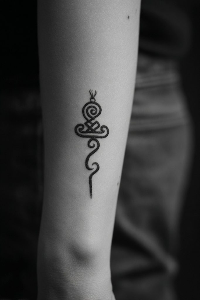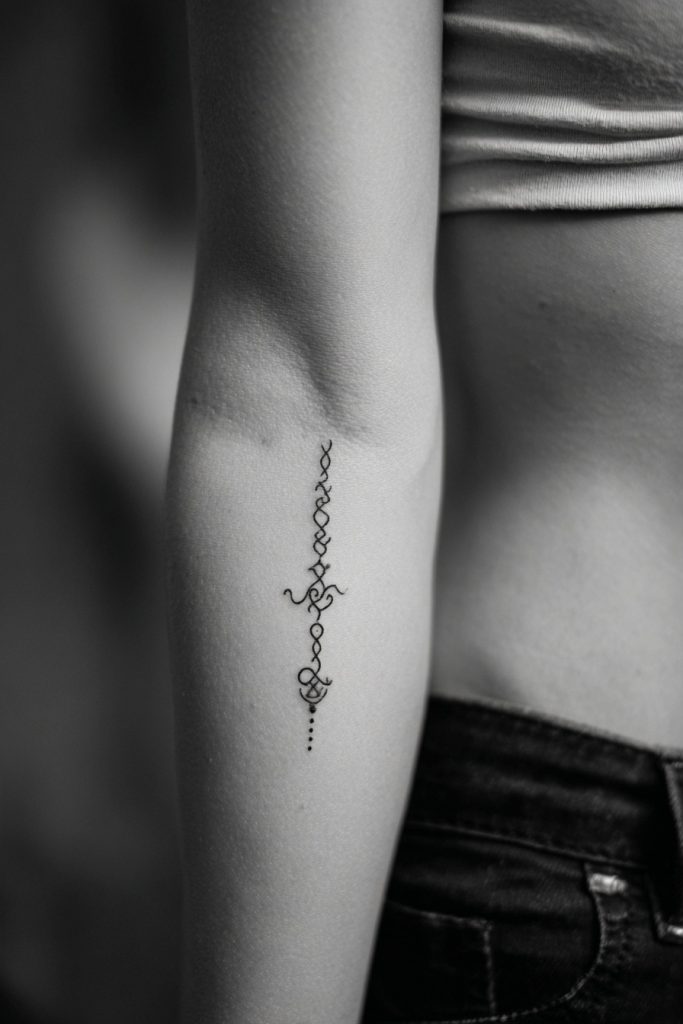 Originating from Buddhist tradition, the Unalome is a visual representation of the path to enlightenment and the twists and turns we all navigate throughout our lives. The spiral at the base represents the beginning of life and the confusion or lack of direction we often feel, while the knots and loops symbolize the lessons learned through struggle. Finally, the path straightens out into a single line, leading to a dot or a flower, which represents reaching a state of harmony and peace. This design is deeply personal, as everyone’s loops and turns are unique to their own experiences. It serves as a beautiful reminder that every mistake and detour is a necessary part of the larger journey toward wisdom and clarity, making it a deeply philosophical choice for a subtle tattoo.