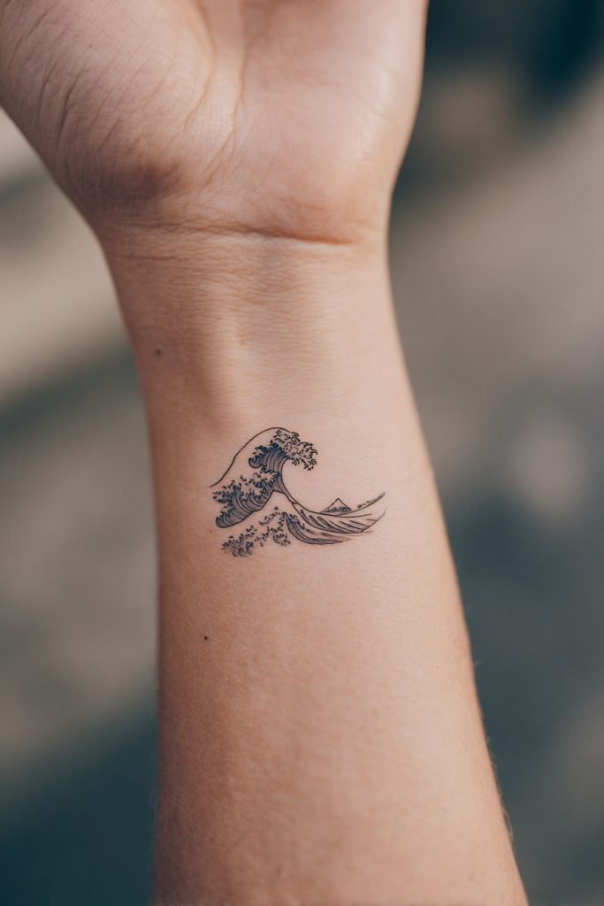 The image of a wave is a tribute to the power of the ocean and the concept of ‘flowing’ with the changes of life rather than fighting against them. A wave represents persistence, as the water constantly returns to the shore, slowly shaping the landscape over time through sheer consistency. It is also a symbol of emotional depth and the ability to navigate through the highs and lows of the human experience with grace. For someone who loves the sea or who finds peace in the movement of water, a tiny wave is a perfect minimalist mark. It reminds us that even the smallest movement, when repeated, can have a massive impact. This tattoo is a beautiful way to honor ones own resilience and the quiet strength required to keep moving forward, tide after tide.