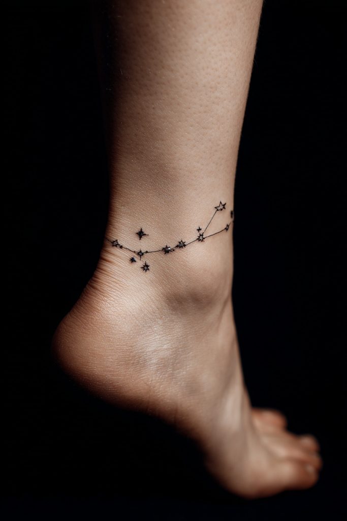 A constellation tattoo is a sophisticated way to represent ones zodiac sign or a specific grouping of stars that holds personal meaning, such as the North Star. These designs use tiny dots and extremely fine lines to create a map of the heavens on the skin, suggesting a connection to something much larger than oneself. It represents the idea of being guided by a higher purpose or finding ones way through the dark by looking toward the light. Many women choose the constellation associated with their birth month or the birth of a loved one, making it a subtle and stylish way to incorporate astrology into their life. The celestial aesthetic is inherently dreamy and mysterious, perfect for those who find inspiration in the vastness of the night sky and the stories written in the stars.