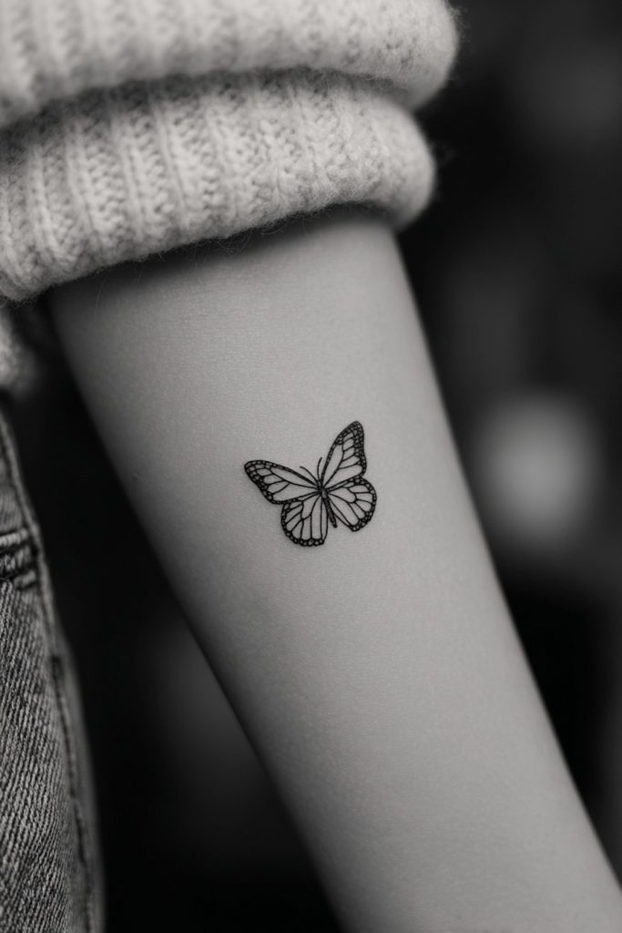 The butterfly is the ultimate symbol of metamorphosis, representing the journey from a confined state to one of beauty and flight. A minimalist butterfly tattoo, often done as a simple silhouette or a continuous line drawing, honors the process of self-discovery and the radical changes we undergo as we grow. It signifies that change, while often difficult and requiring a period of isolation, eventually leads to a more vibrant and free version of ourselves. This mark is a celebration of the soul’s ability to renew itself and to find joy in a new way of being. Placed on the shoulder or the wrist, it acts as a reminder that we are always in a state of becoming and that our potential for transformation is as boundless as the air itself.