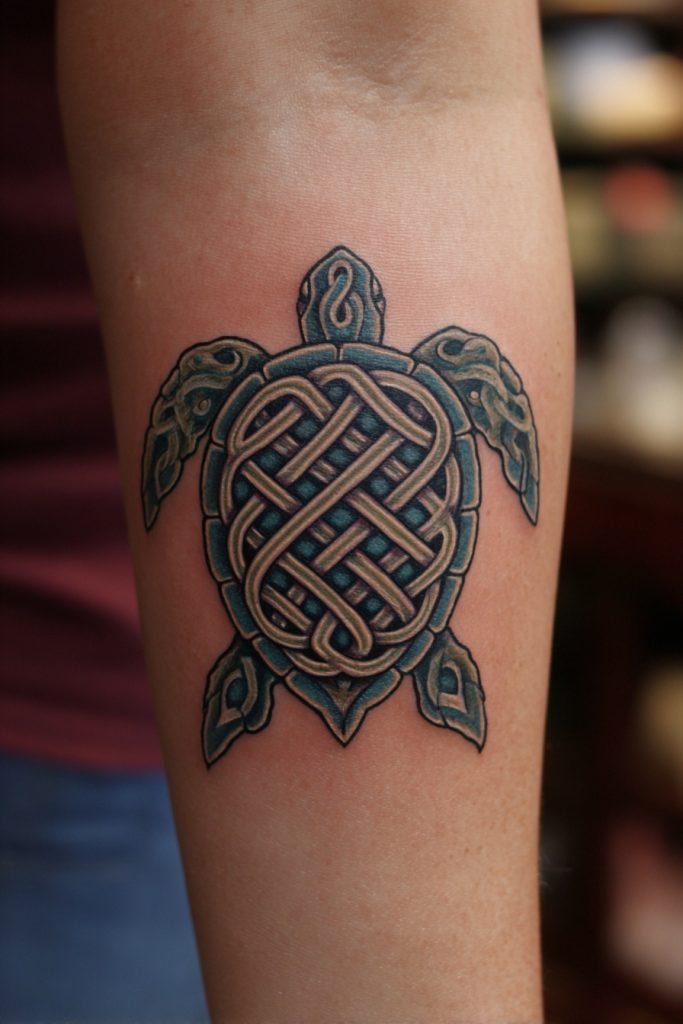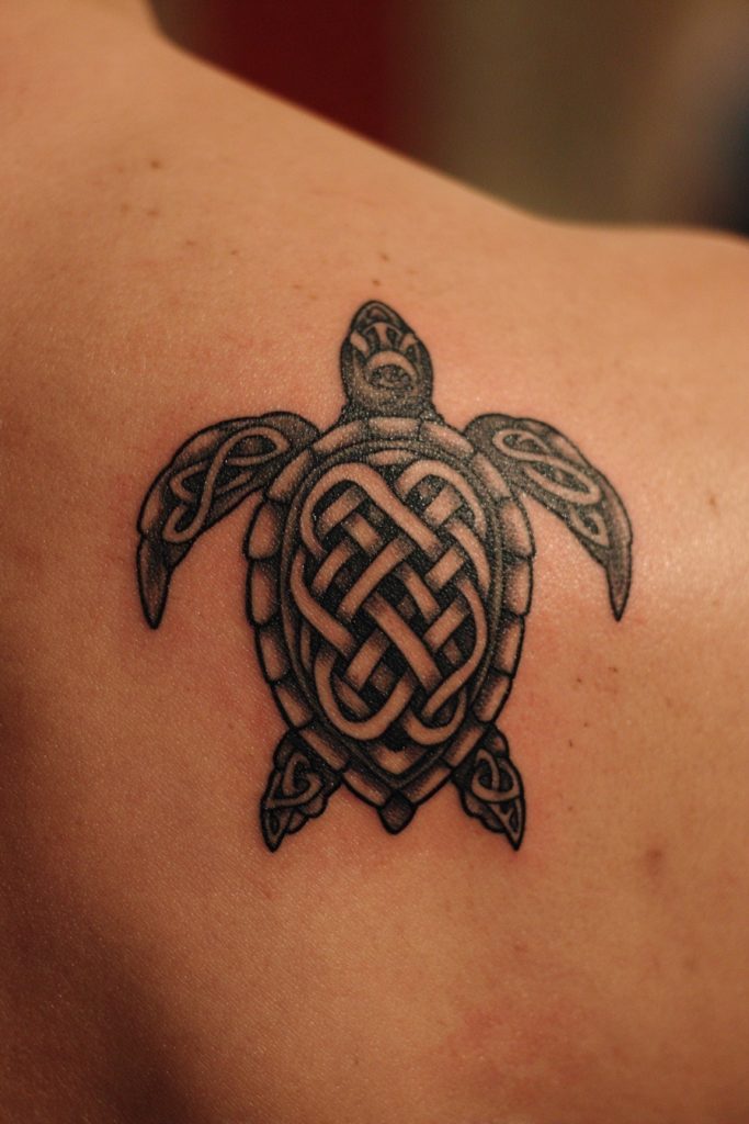 Incorporating Celtic knotwork into the form of a sea turtle is a unique way to symbolize the concept of eternity and the never-ending cycle of life and death. The interlinking loops and knots are designed to have no beginning and no end, which pairs beautifully with the turtle’s reputation for incredible longevity and ancient wisdom. This style suggests that your connection to nature is an eternal part of your spirit, one that persists through multiple lifetimes and experiences. It represents a belief in the continuity of the soul and the idea that we are always moving toward a home that we have visited many times before. A Celtic turtle is a powerful choice for those who feel a deep, mystical connection to their heritage and the timeless rhythms of the natural world.