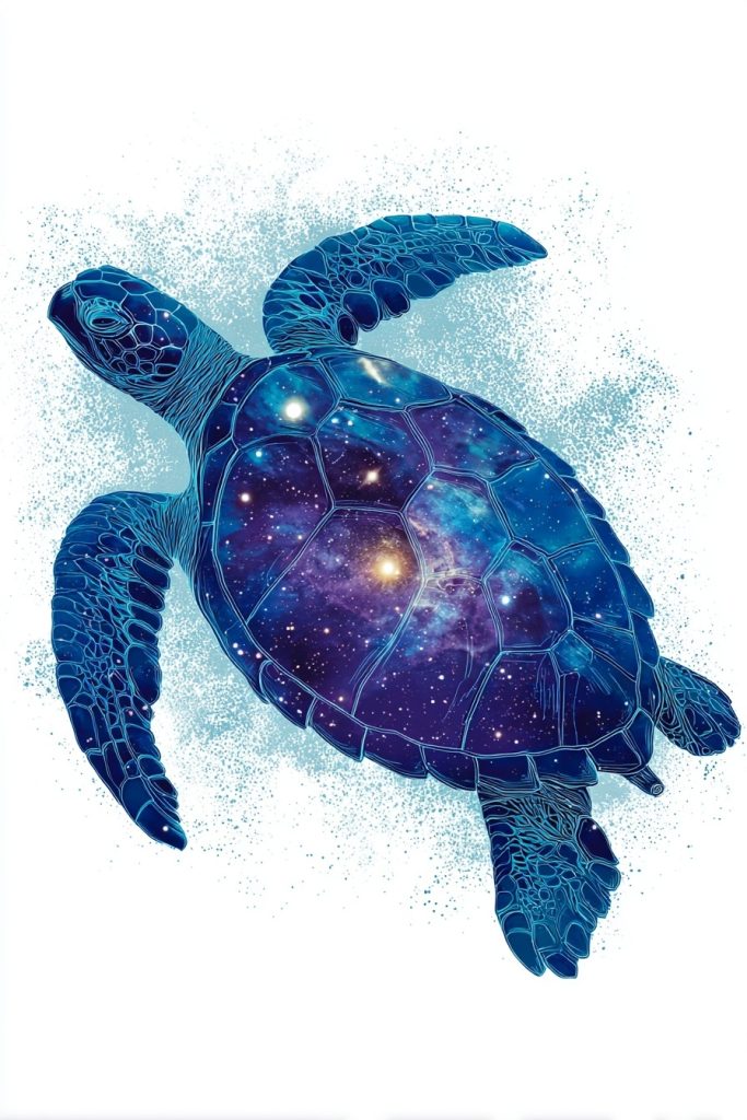 The idea of the world-bearing turtle is a common theme in various mythologies, and a celestial turtle tattoo leans into this by filling the creature’s form with stars, planets, and swirling nebulae. This design represents a cosmic traveler who is connected to the mystery of the entire universe, not just the oceans of the earth. It symbolizes an expansive way of thinking and the belief that we all carry a piece of the cosmos within our own spirits. The deep blues and purples of a galaxy-filled turtle create a sense of infinite depth, suggesting that your internal world is as vast and unexplored as the stars themselves. This is a perfect choice for the dreamer and the philosopher who finds peace in the realization that we are all part of a much larger, starry story.