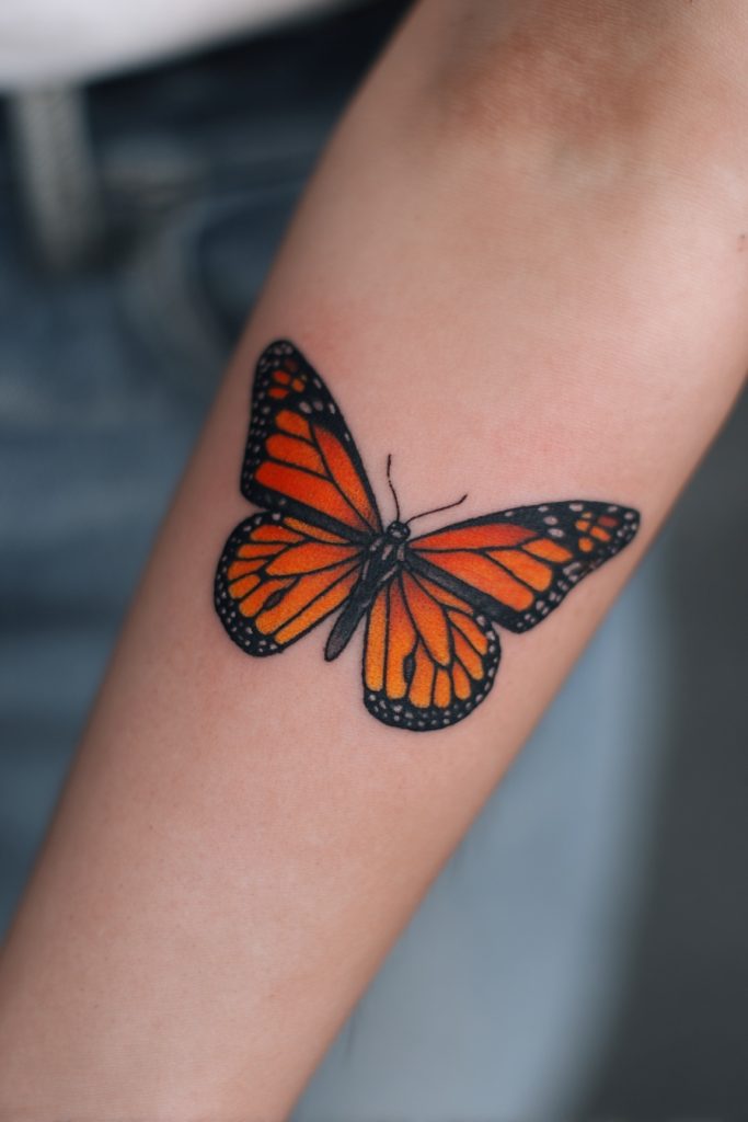 The monarch butterfly is perhaps the most iconic symbol of transformation, endurance, and the incredible journeys we take throughout our lives. For many women, this tattoo represents a period of significant change or the bravery required to migrate from one stage of life to another. The vibrant orange and black patterns of the wings offer a stunning opportunity for color, but the design is equally powerful in black and grey for a more vintage look. Beyond its beauty, the monarch reminds us that growth often requires us to leave the safety of the cocoon and trust in our own wings. It is a tribute to the delicate balance between fragility and strength, showing that even the smallest creatures are capable of crossing vast distances to find their true home. Carrying this image on your skin is a celebration of your own metamorphic power.