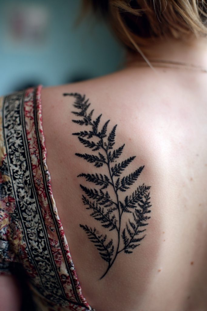 Ferns are among the oldest plants on earth, symbolizing ancient wisdom, shelter, and the hidden magic of the forest floor. A tattoo of fern fronds, perhaps arranged to follow the curve of the ribs or the spine, creates a sense of movement and organic grace that is incredibly flattering to the body. These plants thrive in the shadows and damp corners of the woods, representing a quiet strength that does not need the spotlight to flourish. The unfurling of a new fern leaf, known as a fiddlehead, is a beautiful symbol of new beginnings and the infinite potential of life. Often rendered in a deep green or a striking blackwork style, fern tattoos evoke the feeling of a midnight stroll through a prehistoric forest. They are a perfect choice for those who find their greatest inspiration in the quiet, shaded places of the natural world.