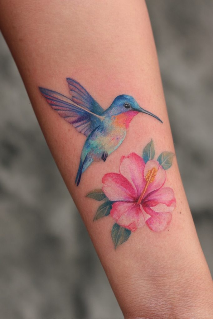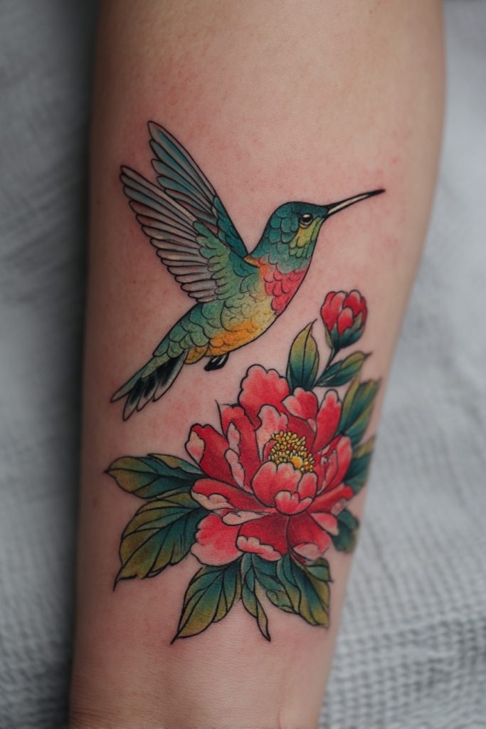 The hummingbird is a marvel of the natural world, representing joy, agility, and the ability to find sweetness in life even during difficult times. This tiny bird is the only one that can fly backward, symbolizing the importance of looking at our past without getting stuck in it. A tattoo featuring a hummingbird hovering over a vibrant bloom is a celebration of vitality and the fleeting beauty of the present moment. The iridescent feathers of the bird provide a wonderful excuse to use a bright, shimmering color palette, creating a piece of art that feels like it is constantly in motion. It is a favorite for those who want to carry a sense of lightness and optimism with them, reminding the wearer that even the smallest efforts can lead to great beauty. This design is a tribute to the energy and resilience required to keep moving toward the things that nourish our spirits.
