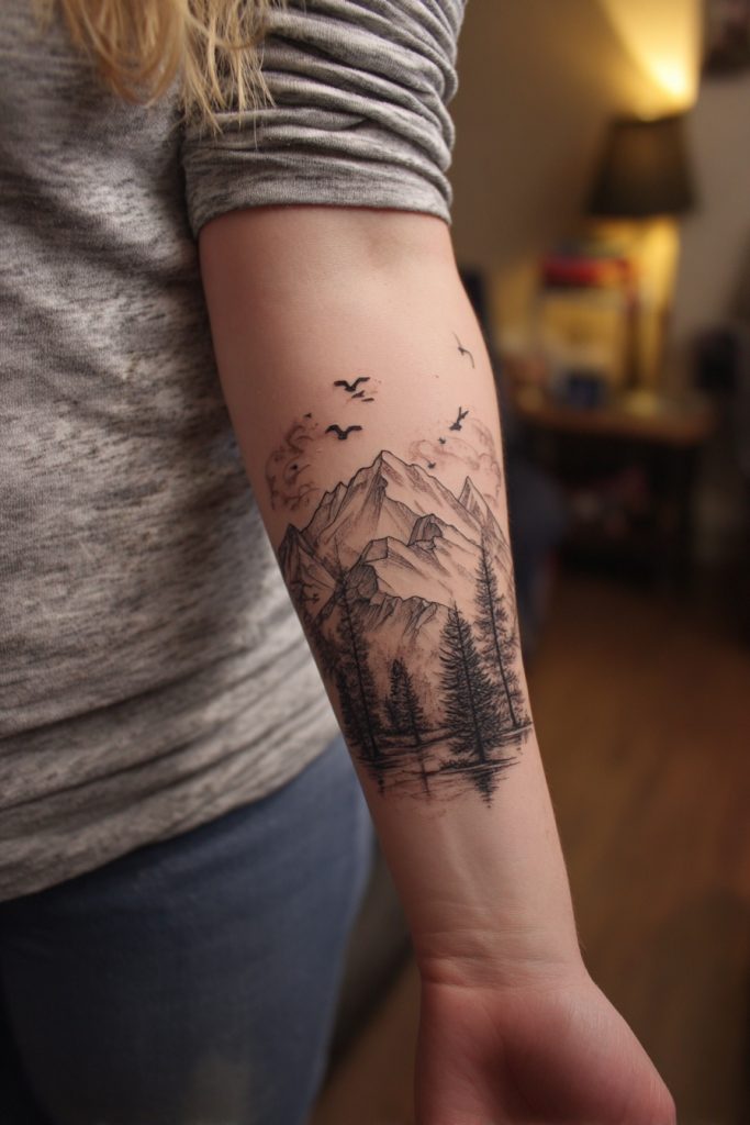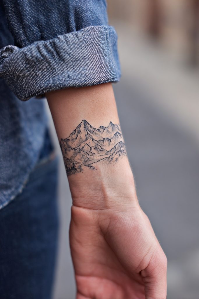 Mountain tattoos are a classic symbol of overcoming obstacles, gaining perspective, and the majestic stillness of the earth. For the woman who finds her peace at high altitudes, a mountain range tattoo can act as a permanent topographical map of her own inner strength. The peaks represent the highs of life and the hard-earned views that come after a difficult climb, while the valleys remind us of the necessary rest and reflection between achievements. This design looks particularly striking as a wrap-around piece on the wrist or a bold statement on the forearm, often incorporating elements like a rising sun or a wandering trail. It is a grounding image that reminds the wearer that no matter how big the problem may seem, they have the stability of a mountain within them. It is a celebration of the journey as much as the destination.