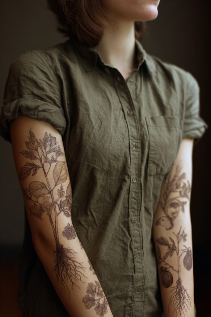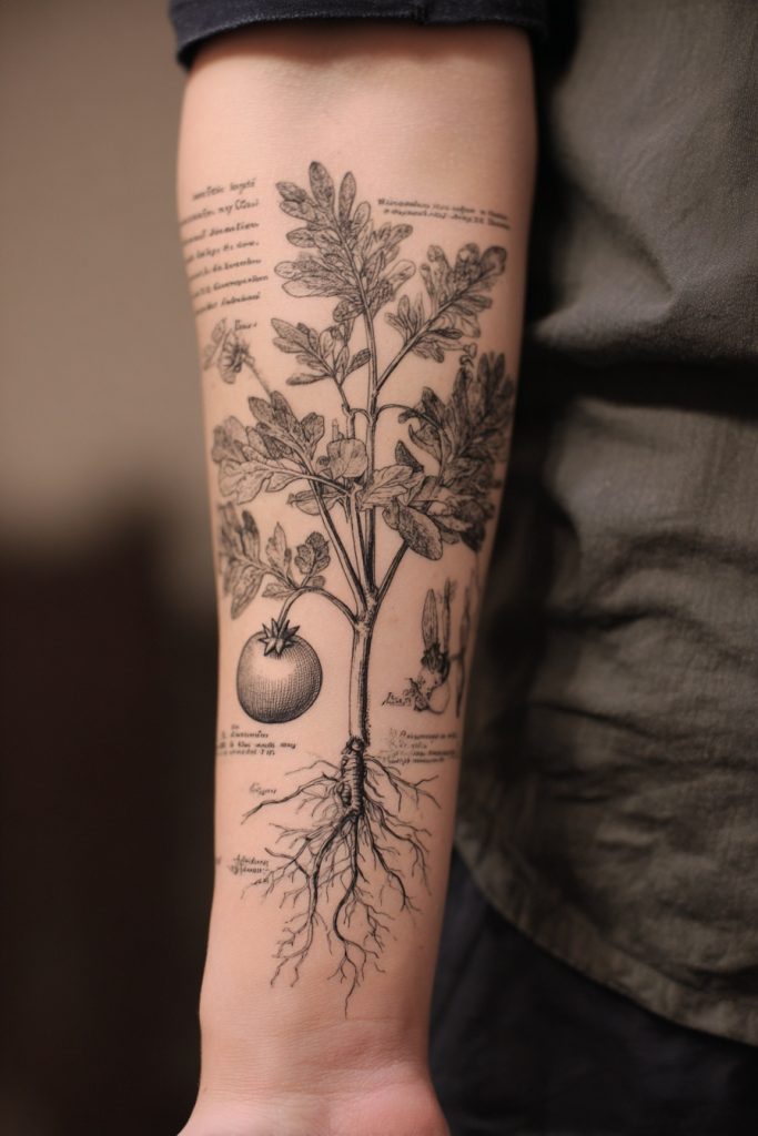 Drawing inspiration from old scientific journals and botanical prints, these tattoos feature highly detailed and accurately rendered plants, often including the roots, seeds, and Latin names. This style appeals to the woman who loves history, science, and the intricate details of the natural world. These pieces look like they have been lifted directly from an explorer’s notebook, giving them a sophisticated and scholarly feel. Whether it is a study of a medicinal herb like sage or a detailed rendering of a pomegranate, these tattoos celebrate the complexity of life and the importance of observation. They often age beautifully, as the fine lines and careful shading mimic the look of an antique engraving. It is a way to turn your body into a living museum, honoring the long history of human curiosity and our desire to document the wonders of the wild.