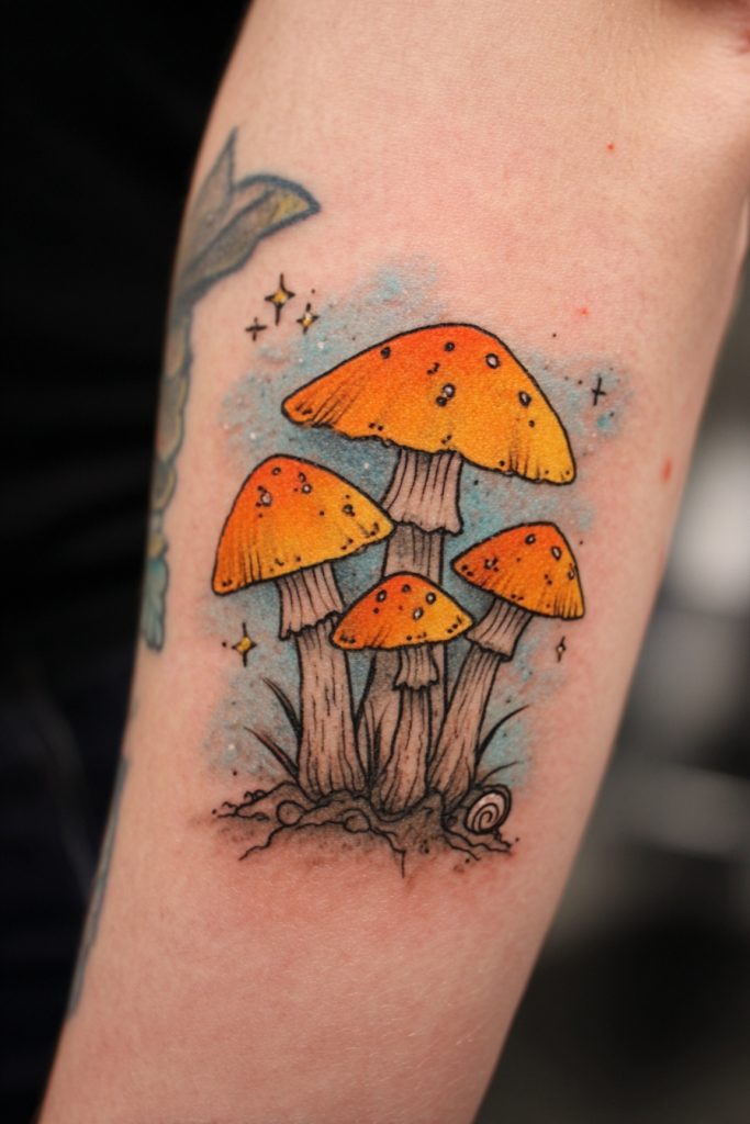 Mushrooms have become a popular tattoo choice for those who are fascinated by the hidden networks of the forest and the mysterious power of the fungi kingdom. They represent transformation, as they turn decay into new life, and symbolize the interconnectedness of all living things through their underground mycelium. A cluster of enchanted mushrooms, perhaps with small sparkles or a tiny snail nearby, adds a touch of whimsy and magic to your skin. These designs can be highly colorful and psychedelic or rendered in a more realistic, earthy style. They remind us that there is beauty and purpose even in the dark, damp corners of the world and that much of the life on earth happens beneath the surface. It is a perfect choice for the woman who finds wonder in the small, often overlooked details of the natural world.