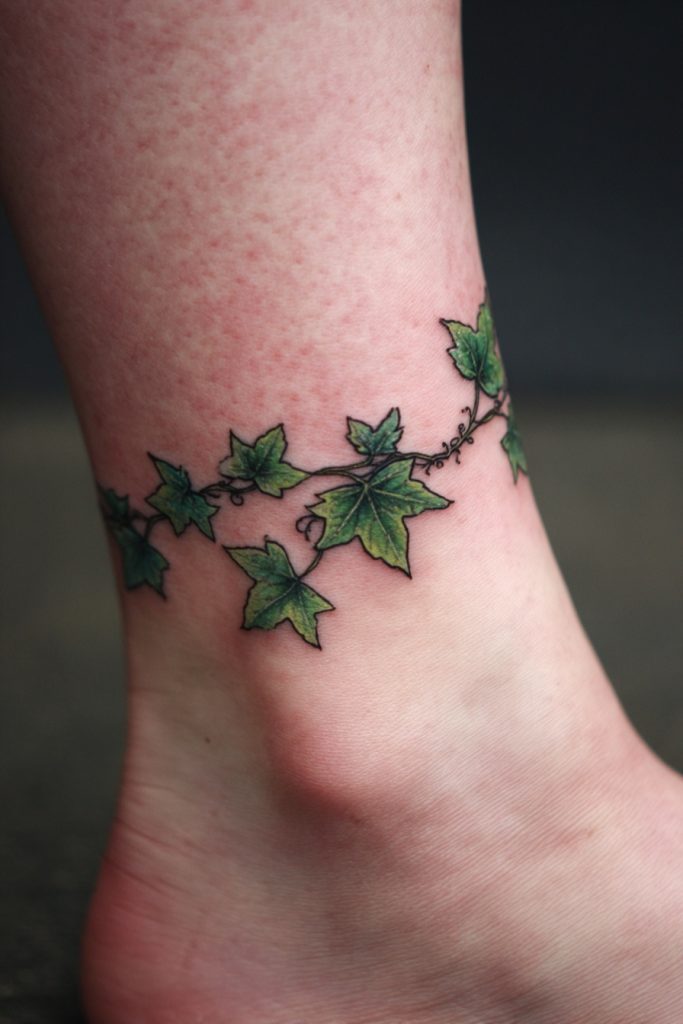 Ivy is a plant that represents fidelity, eternal life, and the ability to cling to and climb over any obstacle in its path. A tattoo of a winding ivy vine can be designed to ‘grow’ along the natural curves of your body, such as wrapping around an ankle, a wrist, or trailing down the side of the neck. This creates a sense of living jewelry that enhances your anatomy while carrying a deep symbolic weight. Ivy stays green even in the shade and in the winter, making it a symbol of a love or a commitment that never fades. It is a beautiful choice for someone who values loyalty and has the patience to grow slowly and surely toward their goals. The interlocking leaves create a beautiful pattern that is both complex and harmonious, reflecting the way our lives are woven together with the people and places we love.