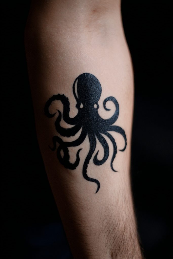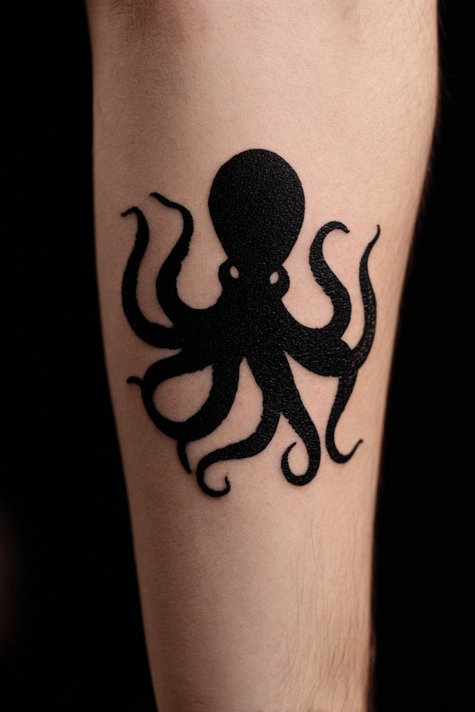 Blackwork tattoos use large areas of solid black ink to create high-contrast designs that are incredibly bold and impossible to ignore. An octopus rendered in this style relies on its iconic silhouette to convey its meaning, emphasizing the sharp shapes of its tentacles and the brooding presence of its mantle. This approach symbolizes a clear and unwavering sense of self, where there is no room for ambiguity or hesitation. It represents the mystery of the shadow and the power that can be found in the quiet, dark places of our lives. A blackwork octopus is a formidable and modern choice that stands the test of time, remaining a striking and powerful mark of your own resilience and your ability to stand firm in your own truth.