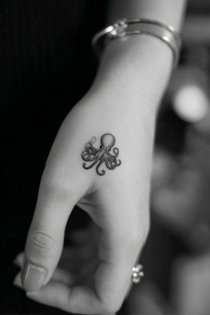 The micro-tattoo trend has made it possible to have an incredibly detailed octopus in a space no larger than a coin, offering a subtle and sophisticated way to wear this symbol of power. These tiny masterpieces are often placed in secret or unexpected spots, such as the side of a finger, the inner lip of the ear, or the back of the neck. This style represents the idea that true strength does not always need to be displayed for everyone to see; sometimes, it is the small, hidden things that provide us with the most support. It is a personal talisman that reminds you of your own adaptability and intelligence during the quiet moments of your day. A micro-octopus is a testament to the fact that even the smallest presence can have a profound impact on the world around it.