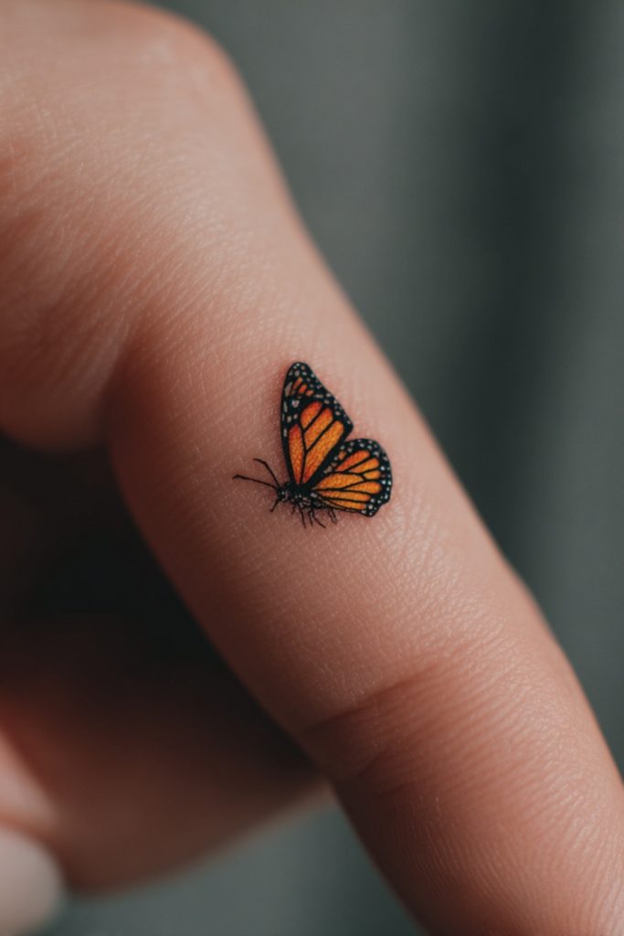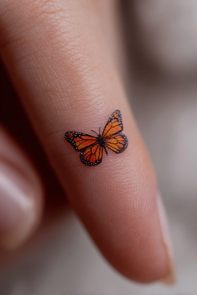 The micro-tattoo trend is perfect for the monarch butterfly, as even a tiny version can capture the essence of its striking color palette. Placing a miniature monarch on the side of a finger, the ribcage, or the back of the neck creates a sense of effortless grace. It is like a small secret or a quiet charm that only becomes visible when you move a certain way. This choice is ideal for someone who wants to carry the symbolism of growth with them without committing to a large or highly visible piece of art. Despite its small size, the vibrant orange ensures that it still draws the eye and sparks conversation. It represents the idea that even the smallest changes can have a profound impact on the trajectory of our lives, much like the legendary butterfly effect where a tiny wing flap can change the world.