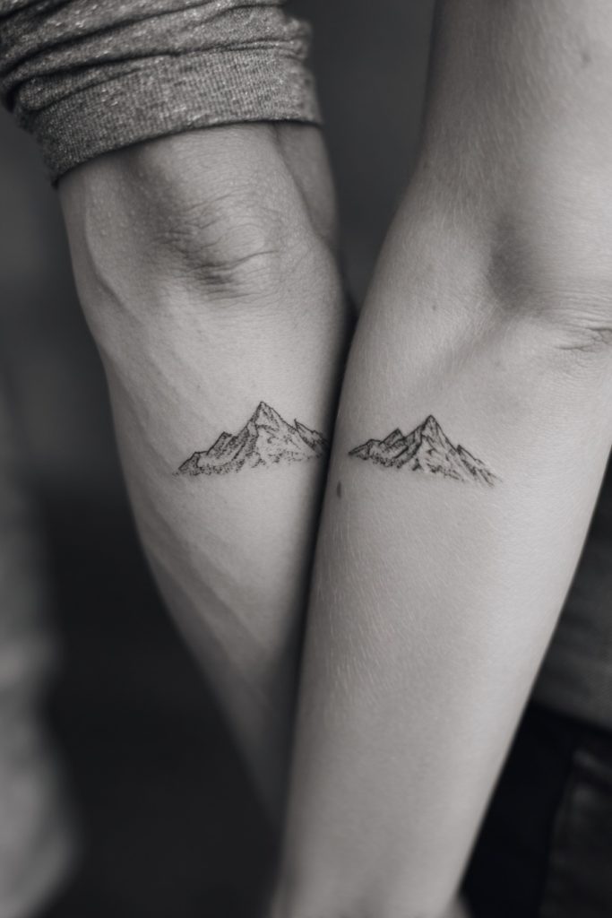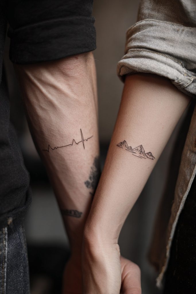 Mountains are powerful symbols of stability, endurance, and the ability to overcome obstacles through sheer persistence. For a couple, a tiny, single-line mountain range can represent the challenges you have faced as a team and the heights you have reached together. It signifies a relationship built on a solid foundation that can withstand the elements and the passage of time. This design is particularly popular among those who share a love for the outdoors or who feel that their bond has been forged through shared adventures and difficult climbs. The linear nature of a mountain silhouette makes it an excellent choice for a wrist or forearm placement, where the jagged peaks and soft slopes can act as a permanent map of your shared resilience and the beautiful view you have created together.