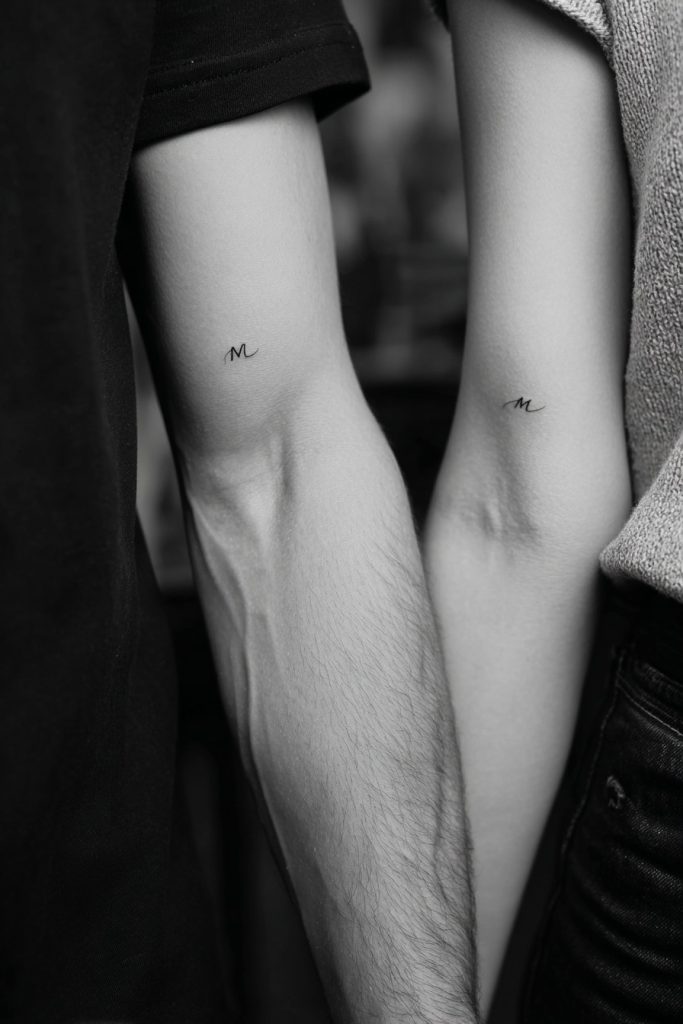 There is an enduring elegance in the simplicity of a single initial rendered in a fine, delicate script. Placing the first letter of your partner’s name on your skin is one of the most traditional ways to honor a relationship, yet it feels entirely modern when done in a minimalist style. It is a quiet, permanent whisper of identity that stays with you through every gesture and every day. Many couples choose a font that reflects their personal taste, such as a sharp, modern serif or a soft, flowing cursive that looks like a piece of jewelry. Because it is so small, an initial can be tucked away on the side of a finger or behind the ear, making it a private tribute that only reveals itself in moments of closeness. It is a timeless choice that honors the person you love in the most direct and personal way possible.