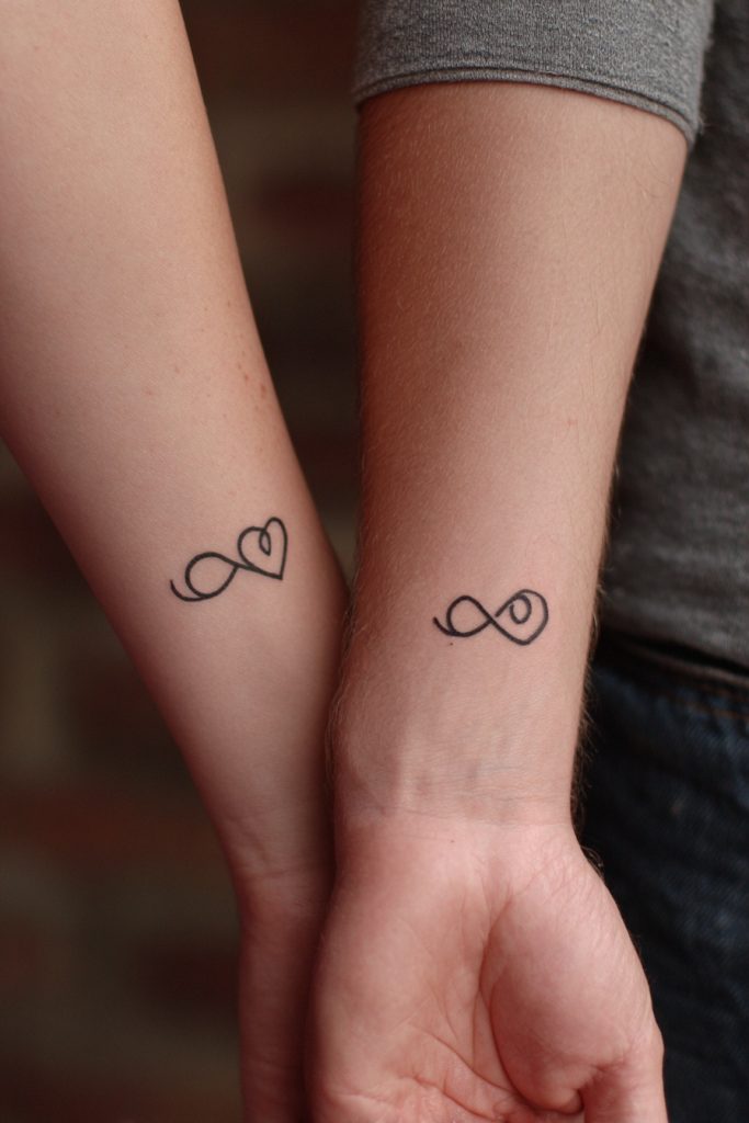 The infinity symbol is perhaps the most direct way to represent a love that has no beginning and no end, but it takes on a new life when incorporated into a unique, minimalist design. Many couples choose to intertwine the infinity loop with a small heart or an initial to make it more personal and less abstract. It represents the fluidity of a relationship that continues to evolve while remaining anchored by a core of eternal commitment. This tattoo is often chosen by those who believe in soulmates or who feel that their connection transcends a single lifetime. Its simple, looping form is incredibly versatile, fitting perfectly on the side of a wrist or as a delicate wrap around a finger. It serves as a constant, looping reminder that your lives are now permanently and beautifully intertwined in a cycle of endless support.