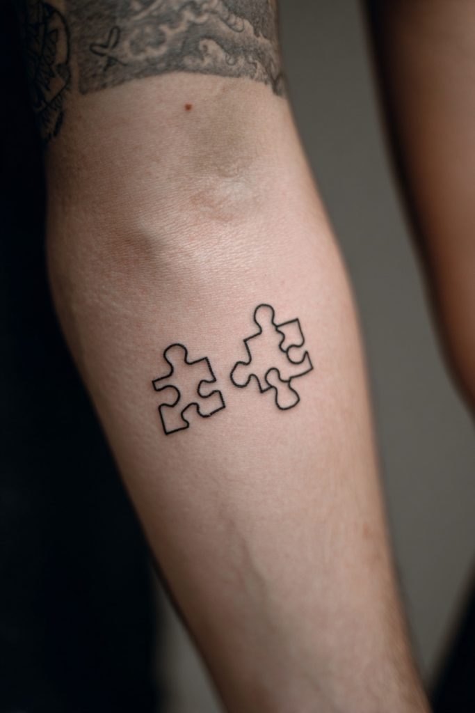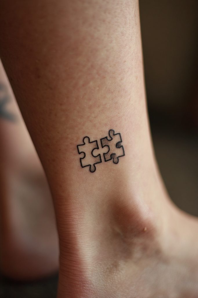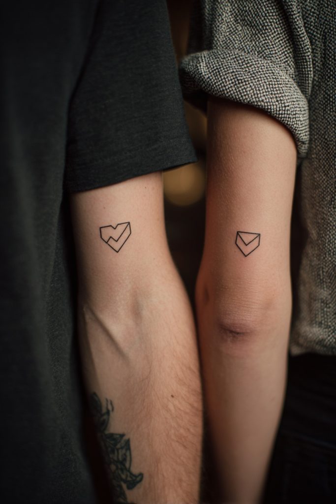 The puzzle piece is a charming and literal representation of the idea that you and your partner fit together in a way that no one else can. It acknowledges that while you are both individual and complete units, you create a more complex and beautiful picture when you are joined together. For a small couple tattoo, a simple outline of a puzzle piece is often enough to convey the message without being overwhelming. It is a nod to the unique quirks, shared jokes, and deep understanding that make your relationship work so well. This design is a favorite for couples who feel that their partner is the ‘missing piece’ that helped everything else in their life make sense. The geometric shape is clean and modern, making it a stylish choice that looks great on the ankle or the inner arm.