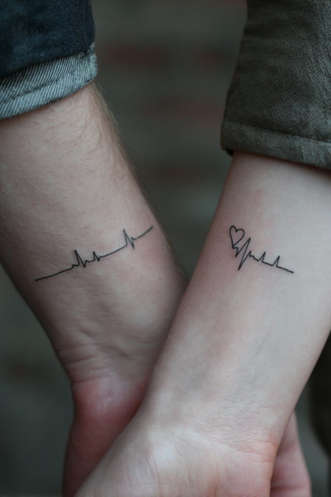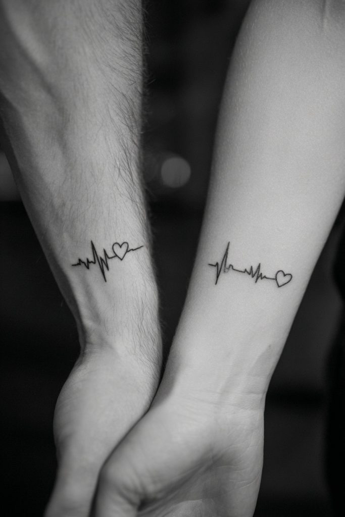 An EKG or heartbeat line is a powerful and modern way to symbolize that your partner is the very rhythm of your life. It represents vitality, passion, and the literal and figurative pulse of your relationship. Many couples choose to have the line begin or end with a tiny heart, or even incorporate a significant date into the rhythm of the spikes. This design signifies that your lives are beating in sync and that you are deeply connected at a fundamental, biological level. It is a particularly moving choice for couples who have supported each other through health challenges or who feel that their love has given them a new lease on life. The thin, horizontal nature of the heartbeat line makes it an ideal design for the inner wrist or the chest, where it can sit close to your own heart.