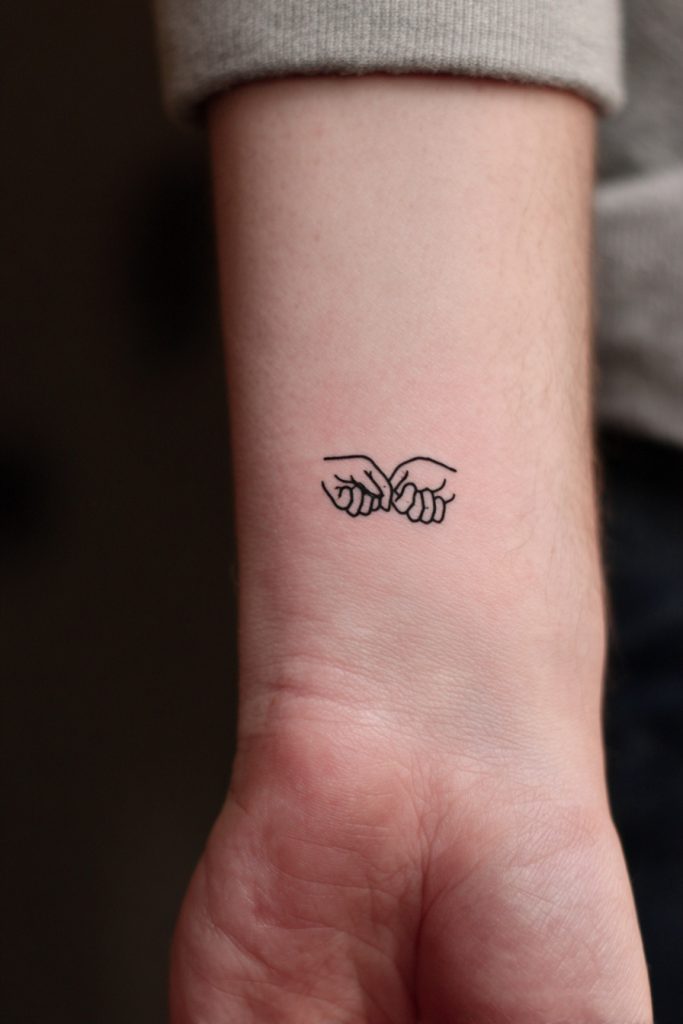 A tiny illustration of two pinky fingers interlocking is a whimsical and heartwarming symbol of simple, unbreakable trust. It harks back to the innocence of childhood promises, representing a commitment to loyalty in the ‘little things’ as well as the big ones. This design signifies that your relationship is built on a foundation of honesty and the kind of steadfast reliability that doesn’t need a formal contract to be real. It is a favorite for couples who value their friendship as much as their romantic connection, emphasizing the fun and playful nature of their bond. A small pinky promise tattoo on the wrist or the side of the hand is a constant reminder to stay true to your word and to always be the person your partner can count on, no matter what.