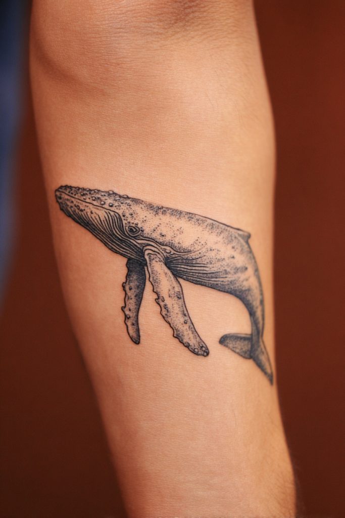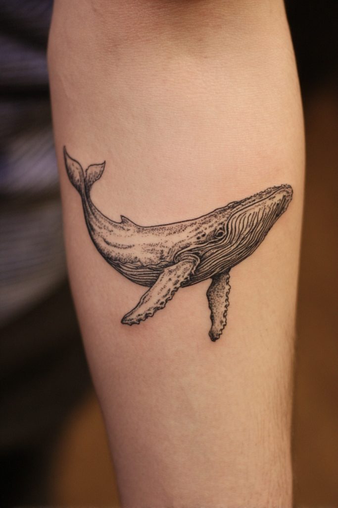 A whale tattoo is a powerful symbol of wisdom, longevity, and the immense scale of the natural world. These gentle giants of the deep represent a quiet strength and a connection to ancient rhythms that most of us can only imagine. In a tattoo, the sweeping curves of a humpback or the sleek profile of a blue whale offer an opportunity for beautiful shading and intricate detail, especially when capturing the texture of the skin or the barnacles that often cling to them. Many people choose to depict the whale breaching the surface, a moment of explosive energy that represents a breakthrough or a newfound sense of freedom. Whether rendered in a realistic style or a more abstract, celestial version, a whale tattoo commands respect and speaks to a soul that feels a deep, spiritual kinship with the silent wonders of the underwater realm.