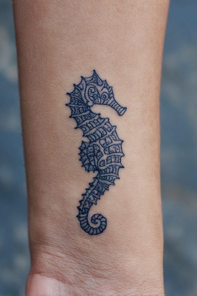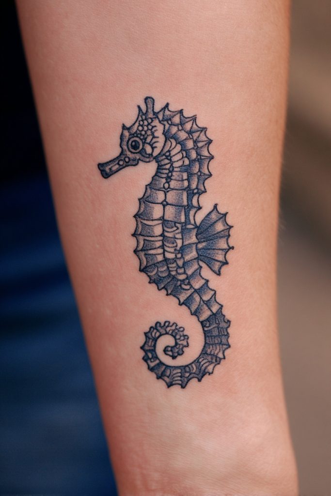 Seahorses are among the most unique and enchanting creatures in the sea, known for their unusual biology and their reputation for being devoted partners. A tattoo featuring a seahorse, or perhaps two intertwined in a gentle dance, symbolizes patience, protection, and a calm persistence. These designs allow for a high level of decorative detail, as the bony plates and curly tails of the seahorse lend themselves perfectly to intricate patterns and even a touch of color. Because seahorses are not known for their speed but rather for their ability to anchor themselves in the face of strong currents, they serve as a wonderful metaphor for staying grounded during the chaotic periods of life. This is a subtle and feminine choice that packs a lot of symbolic weight, appealing to those who find strength in gentleness and who value the quiet beauty of the smaller inhabitants of the ocean.