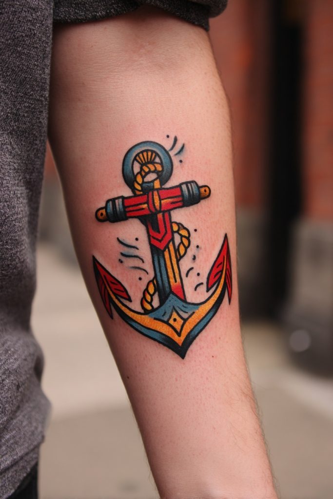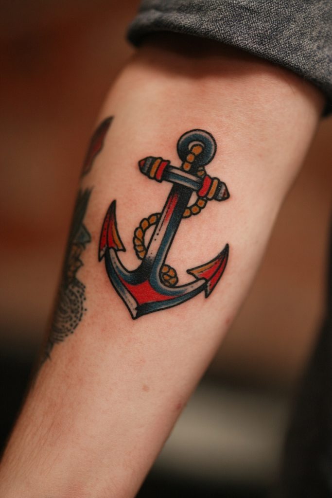 Nothing says nautical history quite like the classic Americana anchor, a staple of traditional tattooing for over a century. Originally worn by sailors to signify that they had crossed the Atlantic or to represent a safe return home, the anchor has become a universal symbol of stability and hope. In the old-school style, these tattoos feature bold black outlines and a limited palette of primary colors, often accompanied by a banner featuring a loved one’s name or a meaningful word like ‘Stay’ or ‘Hold’. An anchor tattoo is a declaration that you have found your footing and that you will not be swept away by the changing tides of fortune. It is a rugged, honest piece of ink that honors the history of the craft while providing a sense of security for the wearer, acting as a metaphorical weight that keeps the spirit centered even in the roughest of seas.