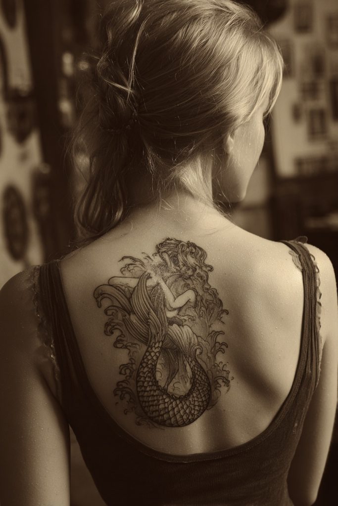 The mermaid is one of the most enduring figures in ocean folklore, representing the untameable beauty and the dangerous allure of the sea. A tattoo of a siren can be rendered in many ways, from the soft and romantic style of Pre-Raphaelite paintings to a more traditional and fierce depiction of a sea-queen. Mermaids often symbolize femininity, freedom, and the duality of human nature, the part of us that belongs to the land and the part that yearns for the deep. The inclusion of scales, flowing hair, and a powerful tail allows for a great deal of artistic expression and the use of shimmering, pearlescent inks. For many, a mermaid tattoo is a way to embrace their own inner mystery and to celebrate the power of their own siren song. It is a legendary choice that connects the wearer to centuries of storytelling and the enduring magic of the maritime world.