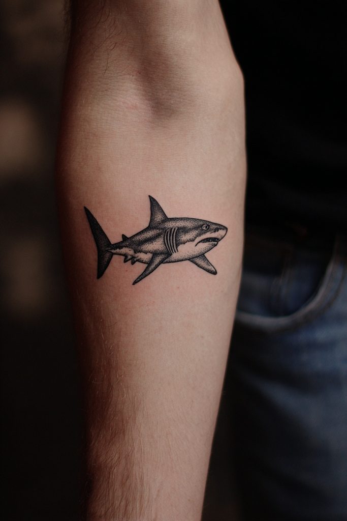 Sharks are the apex predators of the sea, and a tattoo of one is a clear statement of power, survival, and a refusal to be intimidated. While they are often feared, sharks are also symbols of focus and efficiency, animals that have remained virtually unchanged for millions of years because they are so perfectly adapted to their environment. A shark tattoo can be done in a sleek, modern black-and-grey style that emphasizes its streamlined form, or a more aggressive traditional style with bared teeth. For many, this ink represents a personal victory over a difficult situation or a commitment to staying sharp and moving forward no matter what. It is a bold, masculine choice that commands attention and serves as a badge of strength for those who identify with the shark’s relentless drive and its status as the undisputed master of its domain.