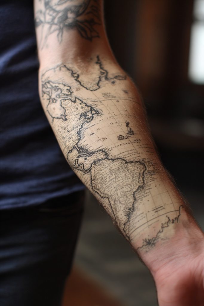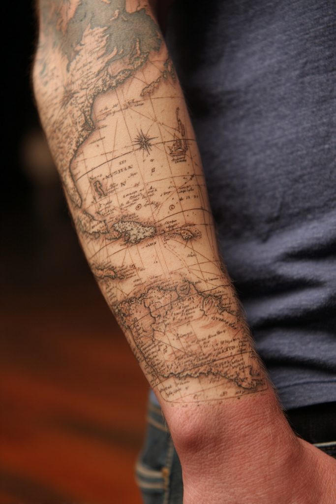 For the history buff or the professional navigator, a tattoo based on authentic nautical cartography offers a sophisticated and scholarly way to honor the sea. These designs use the fine lines, Latin script, and detailed topography found on historical sea charts to create a piece that looks like it belongs in a museum. You might choose to feature a specific coastline that holds meaning for you, or a fictional map that represents a personal quest. The use of aging effects, like soft brown shading to mimic parchment, can give the tattoo a sense of depth and antiquity. This style is less about the creatures of the water and more about the human effort to understand and master the tides. It is an intellectual and refined approach to ocean ink, celebrating the intersection of science, art, and the enduring human desire to map out the mysteries of the world.