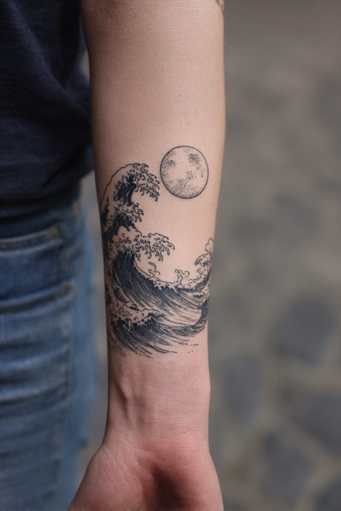 There is a profound and ancient connection between the moon and the ocean, and a tattoo that features both is a beautiful tribute to the rhythms of nature. This design often depicts a full or crescent moon hanging over a swelling sea, symbolizing the gravitational pull that dictates the rise and fall of the tides. It is a powerful metaphor for the cyclical nature of life, the influence of the celestial on the terrestrial, and the emotional fluctuations we all experience. The contrast between the cold, distant light of the moon and the dark, churning energy of the water creates a striking visual that works well in a variety of styles, from realistic to occult-inspired. This tattoo is a favorite for those who feel a deep connection to the lunar cycles and who find peace in the knowledge that everything in life moves in waves, always returning to a state of balance.
