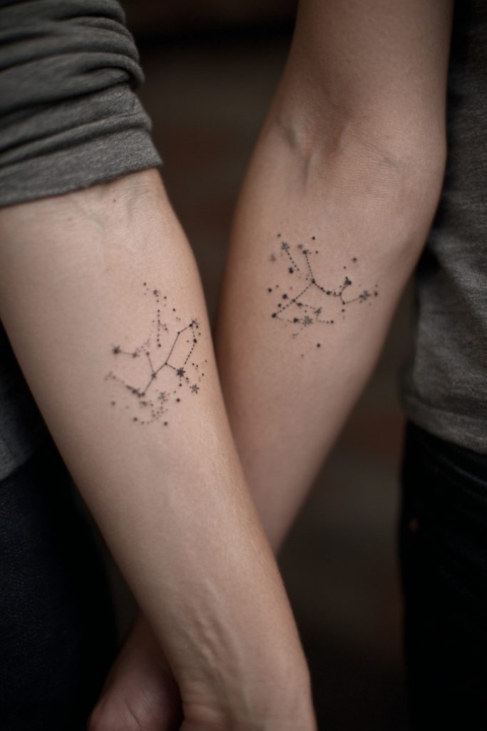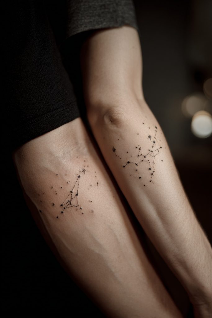 Celestial designs like constellations offer a poetic way to celebrate the cosmic luck of being born into the same family. Siblings might choose the constellation of their shared zodiac sign or perhaps a grouping like the Big Dipper to represent their collective guidance. These tattoos are often rendered in fine-line or dot-work styles, creating a subtle and elegant look that mimics a night sky on the skin. It suggests that your relationship is written in the stars, a fixed point of light that remains constant regardless of how much the world around you changes. Whether you choose identical constellations or separate ones that align when you stand together, this design captures the vastness and the enduring nature of a love that spans across time and space.