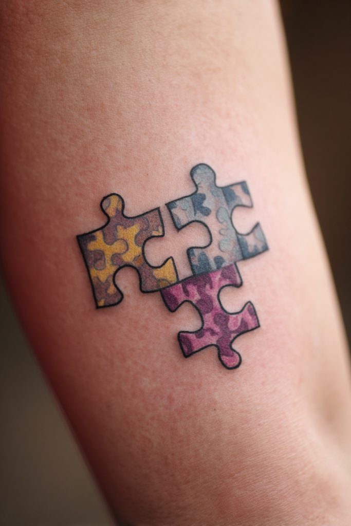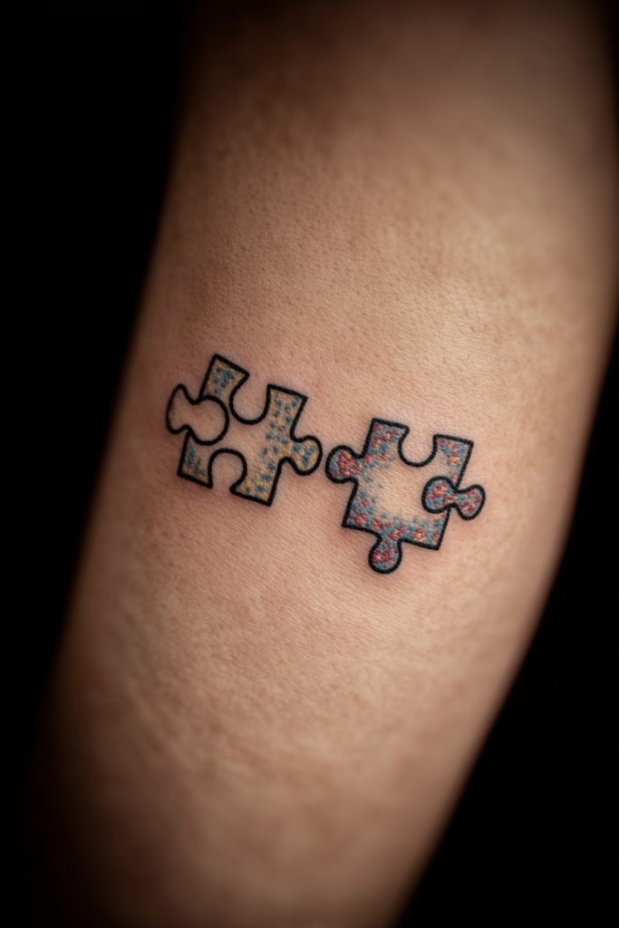 The puzzle piece tattoo is a literal representation of the idea that you and your siblings fit together to create a complete picture. While each piece is a unique shape on its own, its true purpose is revealed only when it is joined with the others. This design is often chosen by large groups of siblings to show how each individual personality contributes to the overall strength of the family unit. You might choose to fill the pieces with different colors or patterns that reflect your personal tastes while keeping the outer silhouette identical for cohesion. It is a heartwarming way to acknowledge that your life would be incomplete without the presence and the support of your brothers and sisters, celebrating the perfect fit of your family.