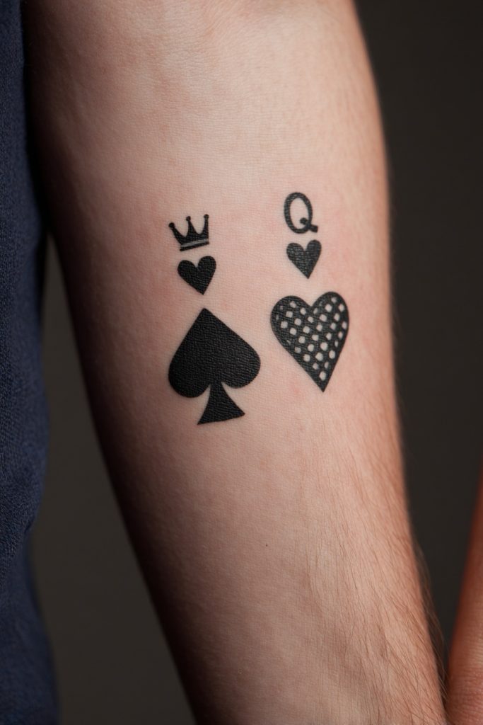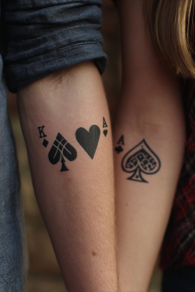 For siblings who enjoy a bit of friendly competition or games, playing card symbols can be a clever way to denote family roles. A brother might choose the King of Hearts while a sister chooses the Queen, or you might use the numbers of the cards to represent your birth order or ages. The bold, graphic nature of card suits like spades, hearts, diamonds, and clubs makes for a very clean and recognizable tattoo. It is a fun and slightly rebellious way to acknowledge your shared heritage while embracing a more unconventional and stylized aesthetic. This design is particularly effective for larger groups of siblings, as each person can take a different suit or rank, creating a full hand of family loyalty that is always ready to be played.