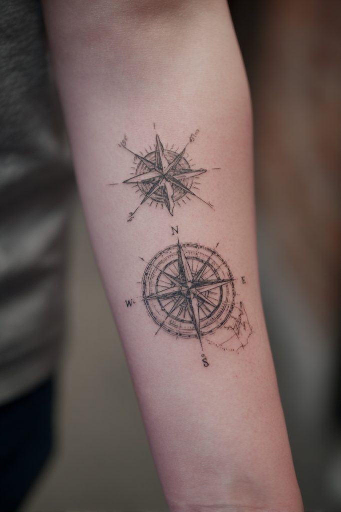A compass is a classic symbol of guidance and finding one’s way, and for siblings, it represents the idea that you are each other’s true North. Even when life takes you to different corners of the globe, the compass serves as a reminder that you always have a home in each other’s hearts. You might choose to have the needle of the compass pointing toward the birth city you share or toward a significant family location. It is a sophisticated and detailed design that appeals to those with a sense of adventure and a deep appreciation for tradition. This tattoo ensures that you are never truly lost, as you carry a permanent reminder of the people who will always help you find your way back to safety and love.