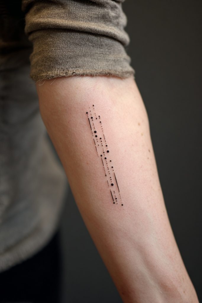 Morse code allows you to hide a secret message or a family name in a series of dots and dashes that look like a simple, minimalist pattern to the uninformed observer. Siblings often choose words like ‘family’, ‘always’, or ‘brother’ to represent their bond in a way that is subtle and private. The linear nature of the code makes it perfect for placement along the inner finger or the collarbone, offering a clean and modern aesthetic. It is a clever way to maintain a sense of mystery while keeping the most important people in your life close. This design is perfect for those who want a meaningful tattoo that does not immediately broadcast its significance to the world, keeping the true meaning as a shared secret between siblings.