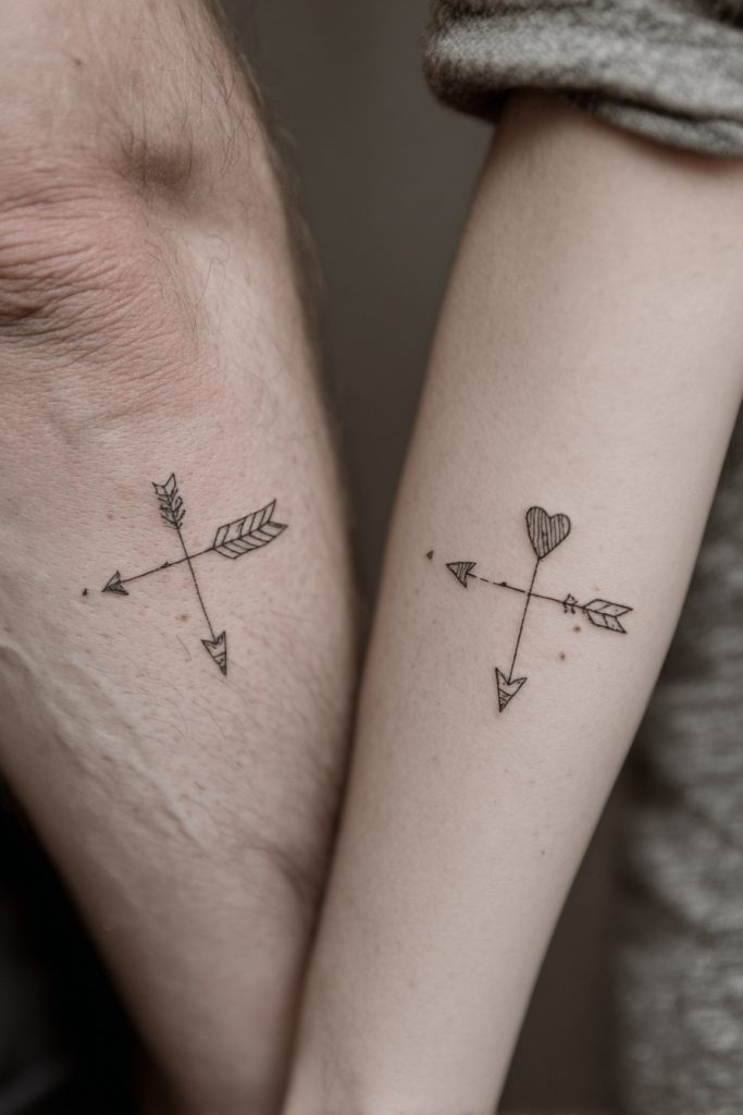 Arrows have long been symbols of protection and moving forward with purpose, and for siblings, they represent a collective strength. A popular choice is a bundle of arrows tied together, referencing the ancient proverb that a single arrow is easily broken, but a bundle is indestructible. Alternatively, matching single arrows pointing in the same direction can signify that you are both moving through life toward the same goals of success and happiness. The design is sleek and versatile, fitting well on the finger, forearm, or calf for both men and women. It represents the idea that you are each other’s defenders and allies, always ready to point each other in the right direction when life becomes challenging or confusing.