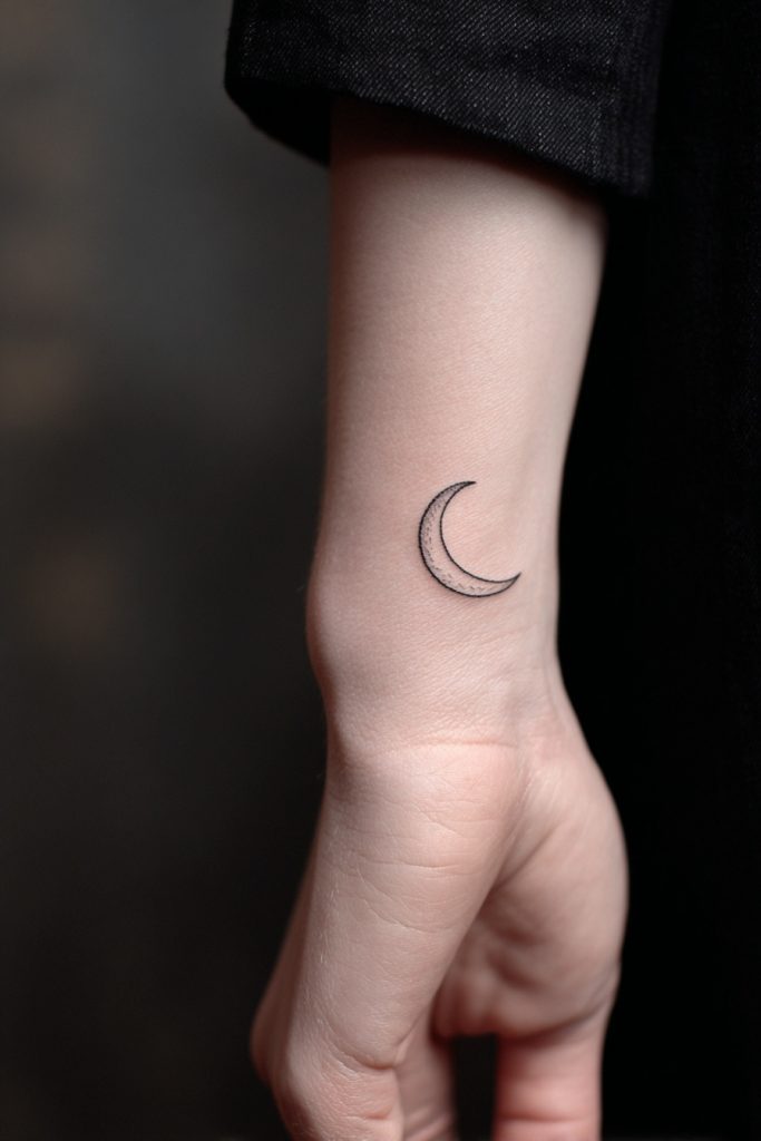 The crescent moon is a classic symbol of change, intuition, and the natural cycles of life that we all must navigate. When rendered in a fine, thin line on the wrist, it becomes a graceful tribute to the feminine energy and the quiet power of the night. This design works exceptionally well for those who feel a deep connection to the celestial world but want to keep their ink subtle and understated. It is a reminder that we are all constantly shifting and growing, even when we feel incomplete or in shadow. The curve of the moon follows the natural anatomy of the wrist beautifully, creating a harmonious balance between the art and the body it inhabits.