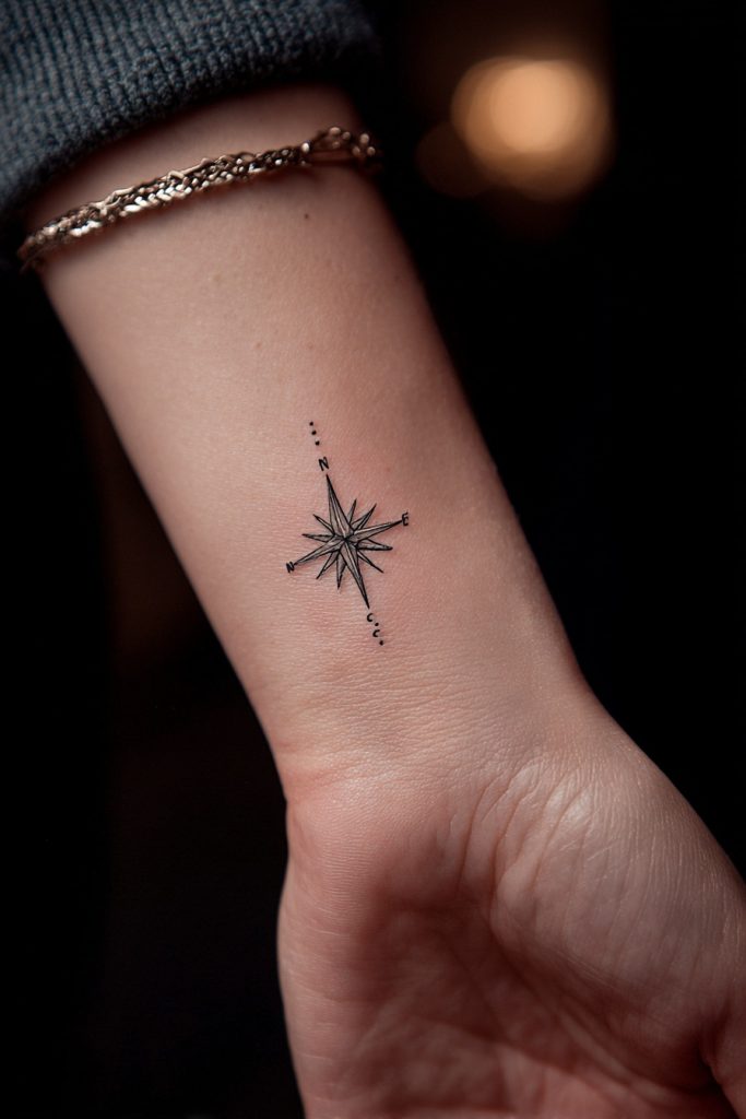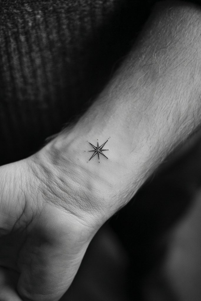 For the seekers and the wanderers, a tiny North Star acts as a permanent compass that guides you back to your true self whenever you feel lost. This design often features four delicate points and a small center, representing clarity, direction, and the unwavering light that shines through the darkness. It is an ideal choice for someone who values their independence and their personal journey above all else. Because of its geometric nature, it looks incredibly sharp and modern when executed by a talented fine-line artist. Having this symbol on your wrist means that guidance is always within reach, serving as a silent motivator to keep moving toward your highest aspirations and dreams.