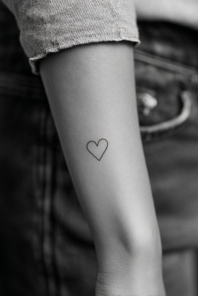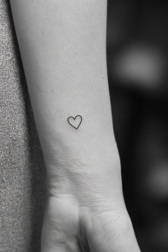 A tiny heart outline is perhaps the most universal symbol of love and compassion, but when reduced to its simplest form, it takes on a modern and chic quality. This design avoids the sentimentality of larger, filled-in hearts, focusing instead on the elegant silhouette of the icon. It is a perfect way to honor a partner, a child, or even your own commitment to self-love in a way that remains private and sophisticated. The thinness of the line ensures that the tattoo looks delicate and refined, blending seamlessly with any style of clothing or jewelry. It is a small but constant reminder that at the core of everything, love is the energy that keeps the world turning and our spirits resilient.