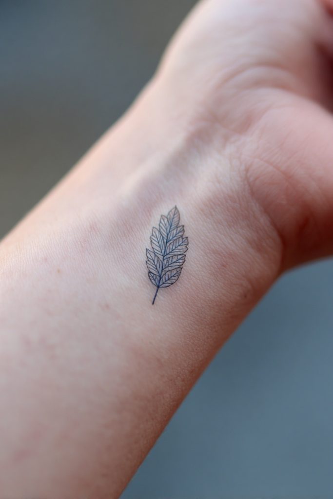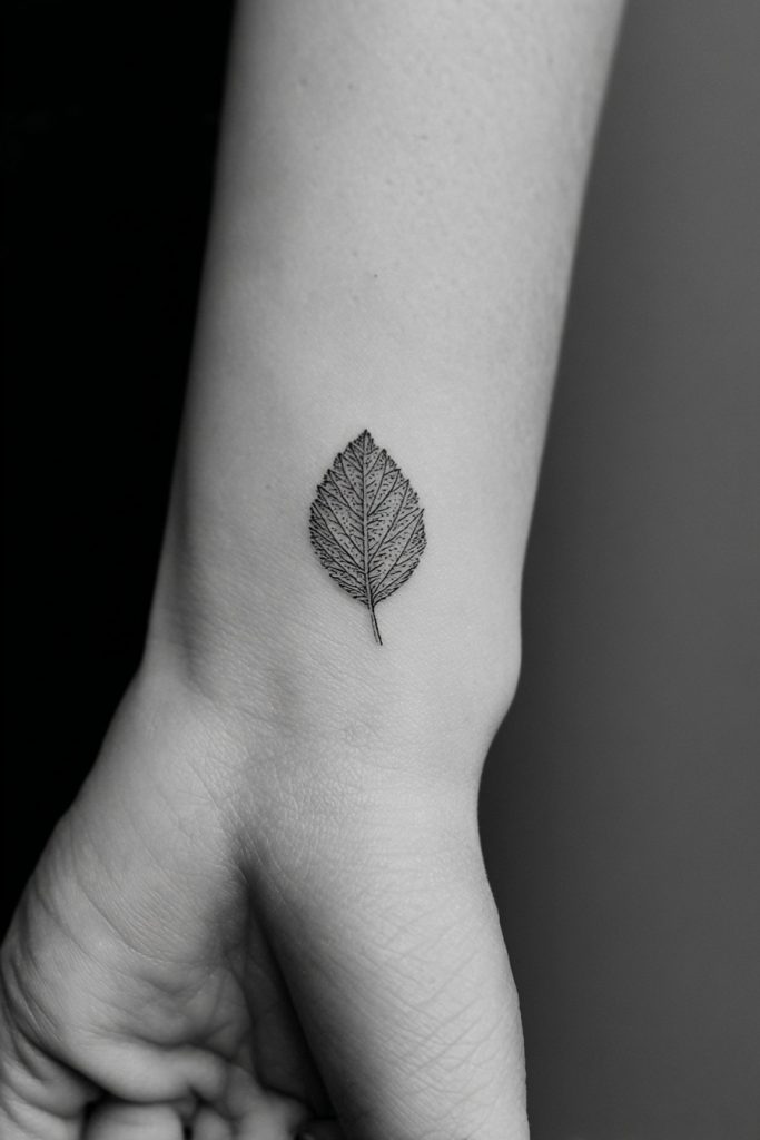 A single leaf is a quiet symbol of growth, renewal, and the fleeting beauty of the seasons that shape our lives. It can represent a specific tree that holds meaning for you, or it can simply be a tribute to the resilience of the natural world. This design looks best when kept very small, with a few delicate veins to give it a sense of realism and texture. It is a grounding icon that reminds us of our own roots and the necessity of occasionally letting go of the old to make room for the new. The organic shape of a leaf provides a soft contrast to the straight lines of the wrist, creating a piece of art that feels as if it grew there naturally.