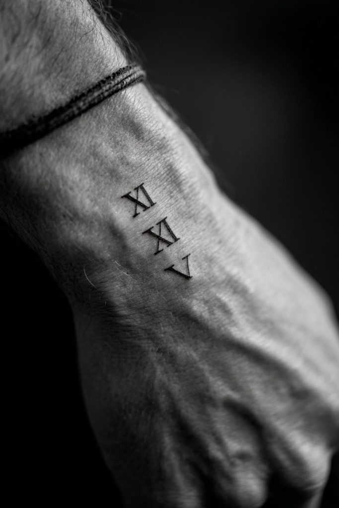 Roman numerals offer a sophisticated and structured way to commemorate a significant date, such as a birth, an anniversary, or a personal milestone. By using these ancient symbols instead of modern numbers, the date becomes a piece of abstract art that is less immediately obvious to others. On the wrist, a short string of numerals in a fine-line style looks incredibly elegant and scholarly. It is a way to anchor a specific moment in time to your body, ensuring that the memory remains close to you as you move through your life. This design is perfect for those who want to honor the past without being overly literal, creating a mysterious and beautiful tribute to a day that changed everything.