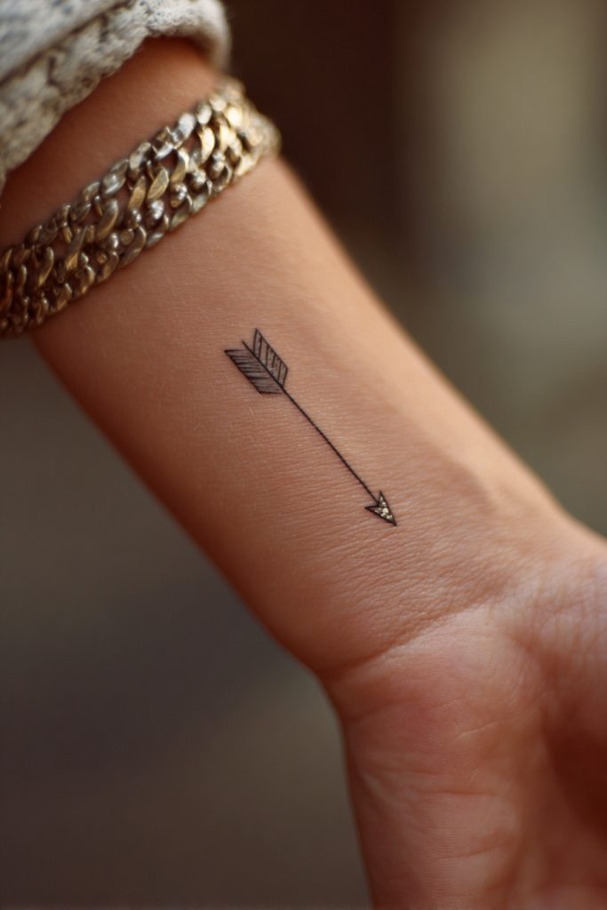 Arrows are often used to symbolize protection, defense, and the necessity of being pulled back before you can be launched into something great. A tiny arrow on the wrist, designed with a simple shaft and a delicate fletching, is a powerful motivator for anyone facing a period of transition or struggle. It serves as a reminder that the tension you are currently feeling is only preparing you for a massive leap forward. The straight line of the arrow looks very sharp against the curve of the wrist, creating a sense of direction and purpose. It is a warrior’s symbol reduced to its most elegant form, providing a quiet sense of strength and focus whenever you need it most.