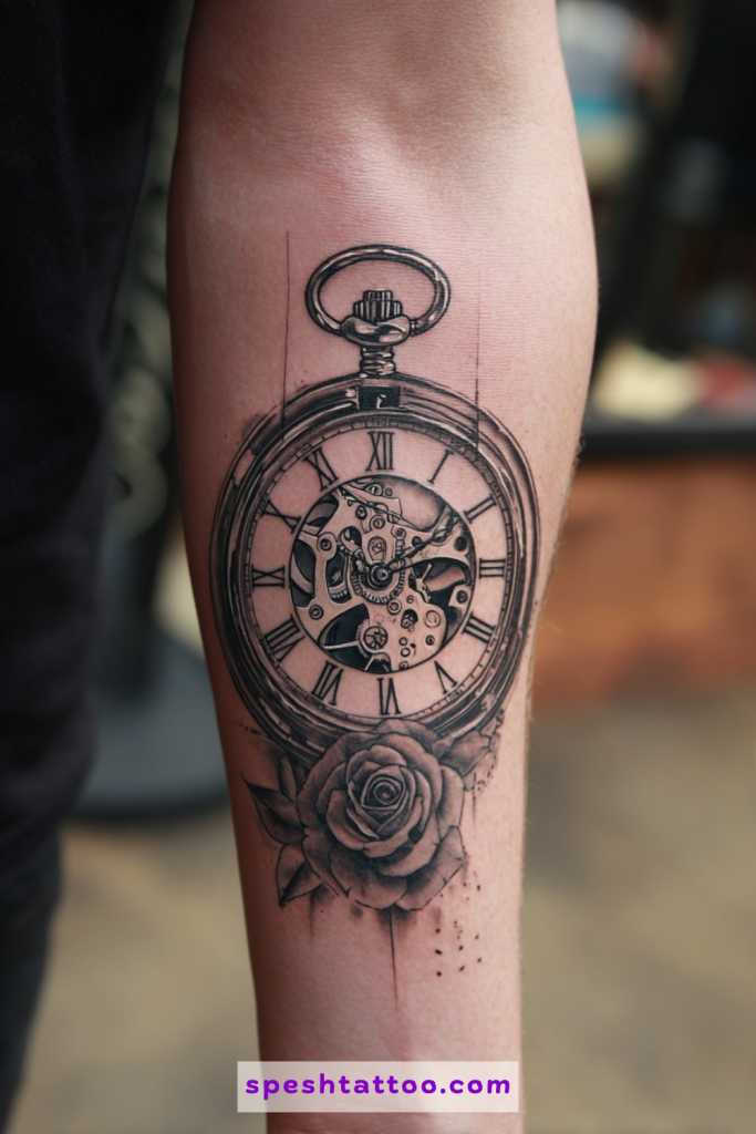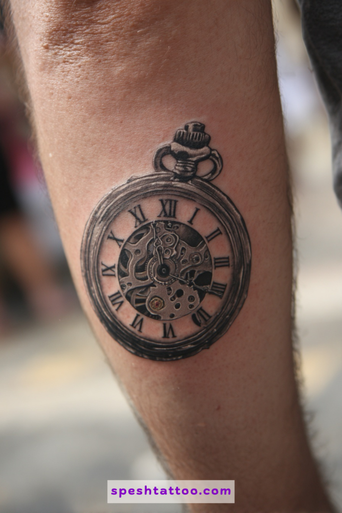 A tattoo featuring a timepiece is a profound way to represent the specific moment your life changed through the birth of a child or a significant family event. Setting the hands of a vintage pocket watch or an ornate hourglass to a specific time creates a permanent record of a life-altering second. These designs often include Roman numerals and intricate mechanical gears, providing a technical and sophisticated look that appeals to many men. You can surround the watch with roses or banners containing names to further personalize the piece. It serves as a reminder that time is our most precious resource and that the moments we spend with our family are the ones that truly define the value of our lives.